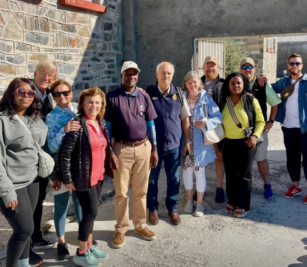 We reach the hotel, and people finally decompress from nine days of non-stop travel experiences. Sitting by the pool watching the sunset was an absolute joy. We also enjoyed a special treat having Stha’s husband Felix join us for dinner. Meeting Stha in Bulawayo while they were both at Universuty, he certainly “chose wisely”! As our group enjoyed a last specially prepared wine-pairing” dinner, we learned our sommelier from the hotel was picked as the number one sommelier in all of South Africa last year. The wine and dinner was excellent and we all toasted Drew and Beyond Adventures for a job very well done. Bie bie Dankee!