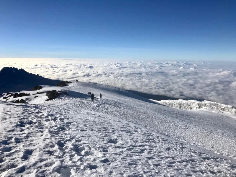 They will make their way up a path that is flanked by The Ratzel and Rebman Glaciers, and climb for about six hours before reaching the edge of Kilimanjaro crater, between Stella and Hans Meyer points. Another hour of climbing will bring them to the summit!